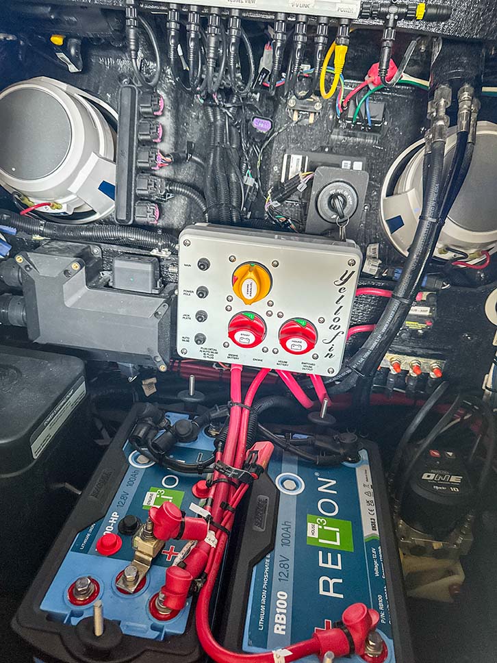 PowerPole Move is the installed trolling motor. And absolutely amazing piece of equipment. They have certainly fixed everything that was wrong with trolling motors. 2 36 V Lithium Ion batteries from Relion manage the charge fort the trolling motor.