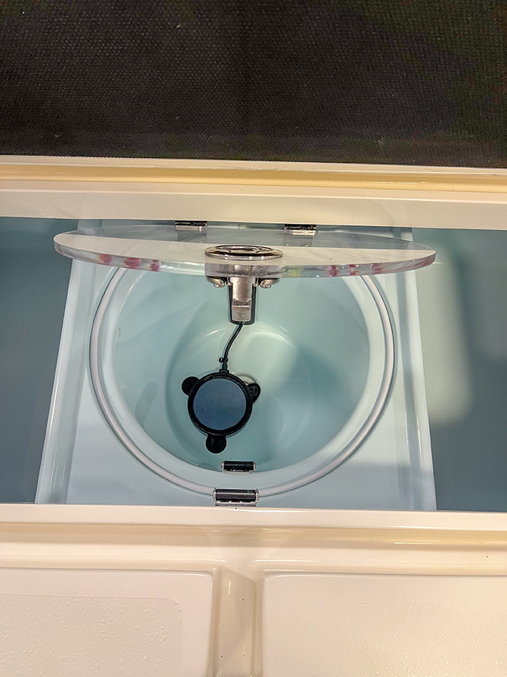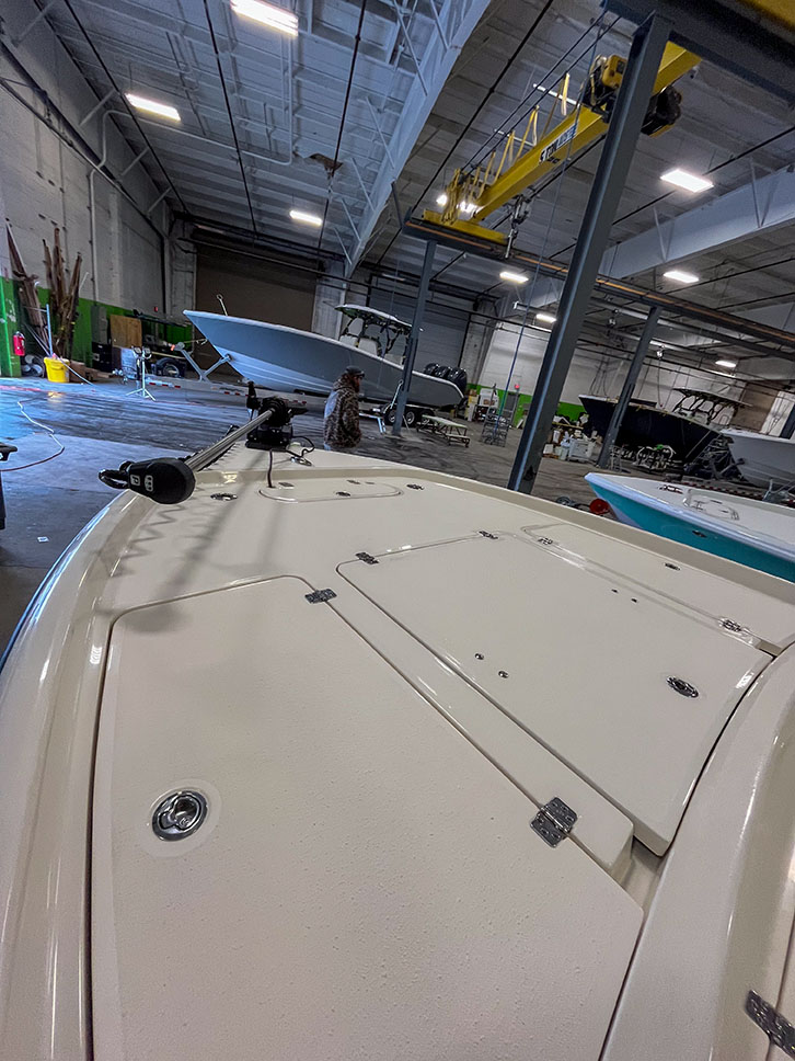 This Yellowfin 24 CE is the critter version. All of my 24 elephants are critters now this means there is a small Bait well in the forward first hatch that not only holds my shrimp and crabs, but also keep them cool as I have a cooler on both sides of them that keeps my critter well nice and chilly.
