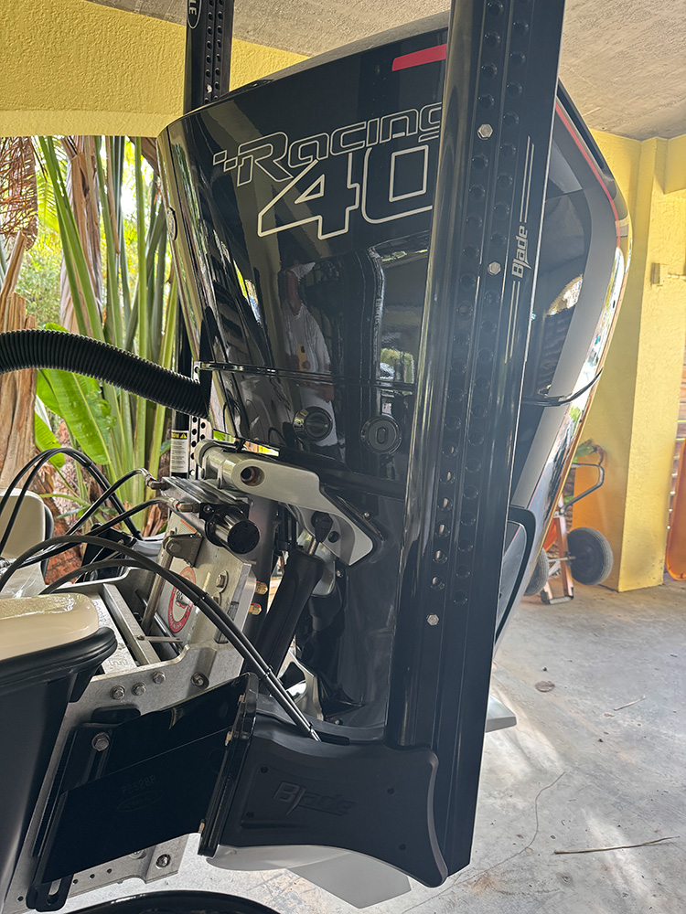 Jack plate is a BOBs Machine Shop with a 10″ set back hanging on to the motor.